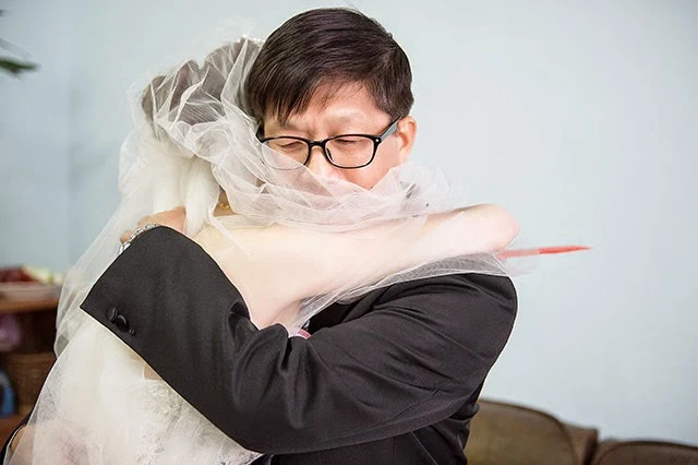 | 拜別玩父母、蓋上頭紗坐上禮車,眼淚彷彿還在眼眶裡的新娘 |